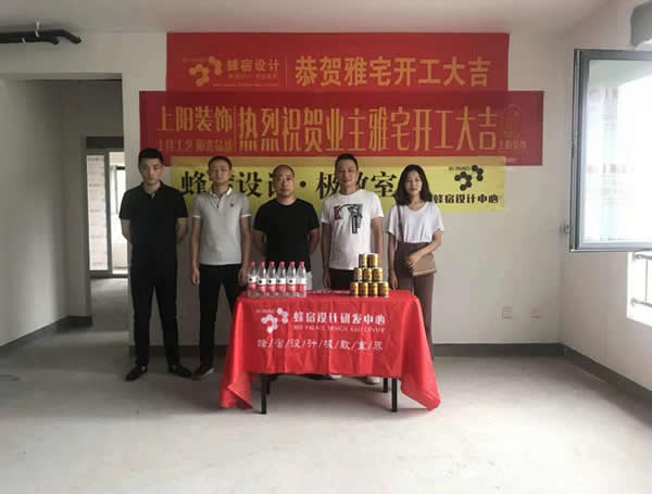 9月1日早晨8:58分,上阳装饰在柏悦公馆9栋郑总新宅内举行开工仪式。因当天是周末,应物业和环保部门要求不可有噪音施工,当天举行完开工仪式后,设计师和施工负责人进行了拆建墙体交底,下星期一正式开工。