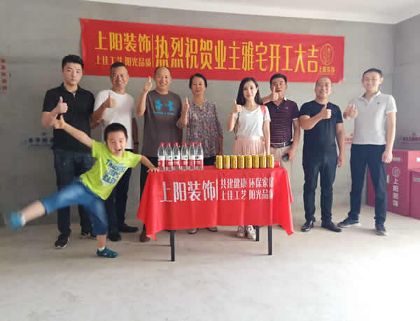 9月15日,上午9点06分。葛洲坝·玖珑府 丁总家装饰工程正式开工。上阳装饰全体人员预祝丁总雅宅开工大吉,家庭生活幸福和睦。上佳工艺-阳光品质。上阳装饰励志:共建健康 环保家居。